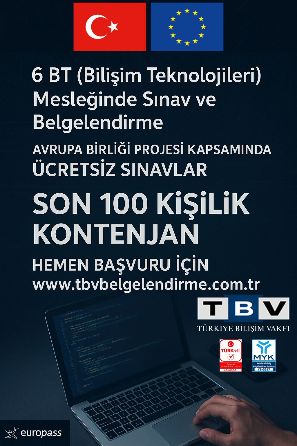Bilişim Sektöründe Mesleki Yeterlilik Belgesi Sınavlarında Son 100 Kişi!